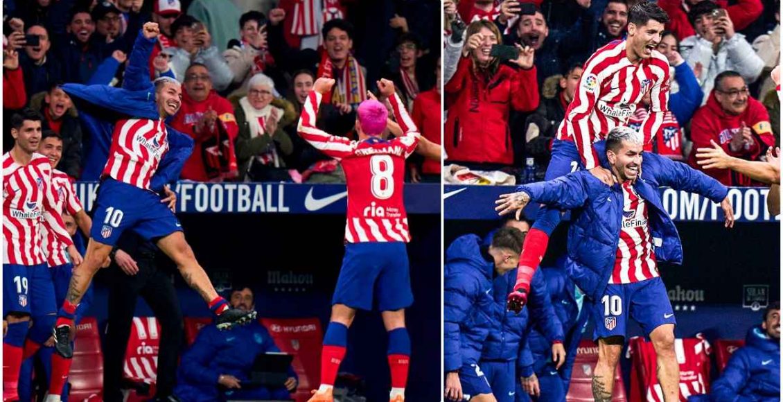 – Tras una revisión en el VAR, el gol fue validado y el #10 colchonero lo celebra en el banco de suplentes.pic.twitter.com/HrzA3dzkEx