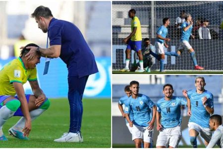 അർജന്റീനയിൽ വെച്ച് നടക്കുന്ന അണ്ടർ 20 ലോകകപ്പ് ടൂർണമെന്റിൽ ബ്രസീലിനു ഞെട്ടിക്കുന്ന തോൽവി. അധികസമയത്തേക്ക് വരെ നീണ്ട മത്സരത്തിൽ ഇസ്രായേലാണ് ലാറ്റിനമേരിക്കൻ കരുത്തരെ വീഴ്ത്തിയത്. രണ്ടിനെതിരെ മൂന്നു ഗോളുകൾക്കായിരുന്നു ഇസ്രയേലിന്റെ വിജയം. മത്സരത്തിൽ അടുത്തടുത്ത മിനിറ്റുകളിൽ ലഭിച്ച രണ്ടു പെനാൽറ്റികൾ ഇസ്രായേൽ തുലച്ചില്ലെങ്കിൽ വിജയം ഇതിലും മികച്ചതായേനെ.