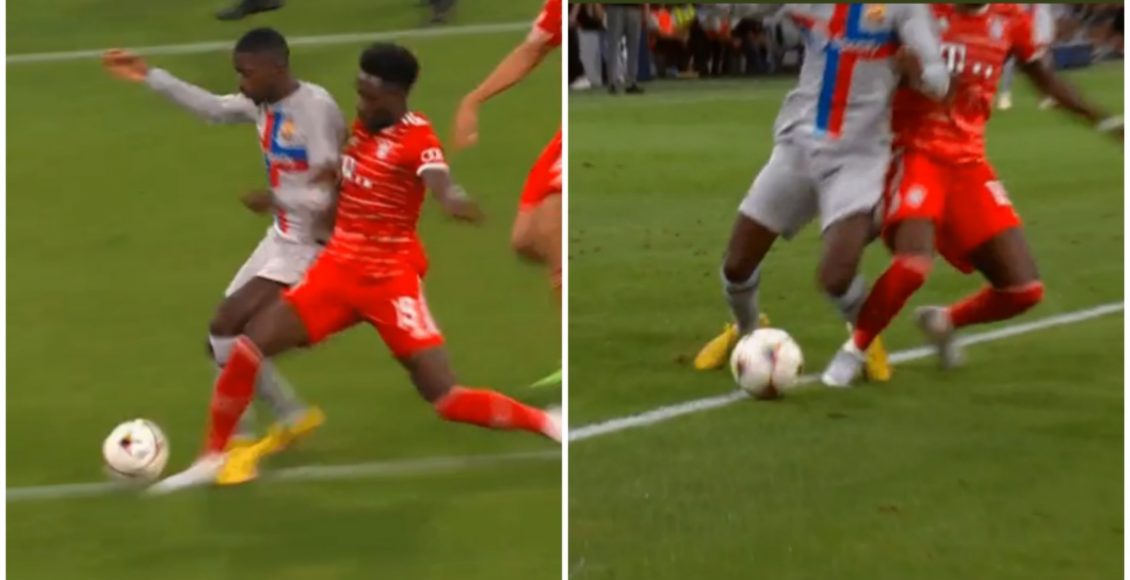 ആദ്യപകുതിയിൽ ഡെംബലെ പന്തുമായി മുന്നേറുമ്പോൾ ബോക്‌സിന്റെ എഡ്‌ജിൽ വെച്ചാണ് കനേഡിയൻ താരം ഫൗൾ ചെയ്‌തത്‌. ബാഴ്‌സലോണ പെനാൽറ്റിക്കു വേണ്ടി അപ്പീൽ ചെയ്‌തെങ്കിലും മത്സരം തുടരാനാണ് റഫറി ആവശ്യപ്പെട്ടത്. അവിടെ നിന്നും ബയേണിന്റെയൊരു പ്രത്യാക്രമണവും നടന്ന് ഗോളിനരികിൽ എത്തിയിരുന്നു. റഫറിയുടെ തീരുമാനത്തെ വീഡിയോ അസിസ്റ്റന്റ് റഫറി ഇടപെട്ട് തിരുത്തുകയും ചെയ്‌തില്ല. എന്നാൽ ആ സംഭവത്തിന്റെ ദൃശ്യങ്ങൾ കണ്ടാൽ ഡെംബലെ ഫൗൾ ചെയ്യപ്പെട്ടുവെന്ന കാര്യം വ്യക്തമാണ്.