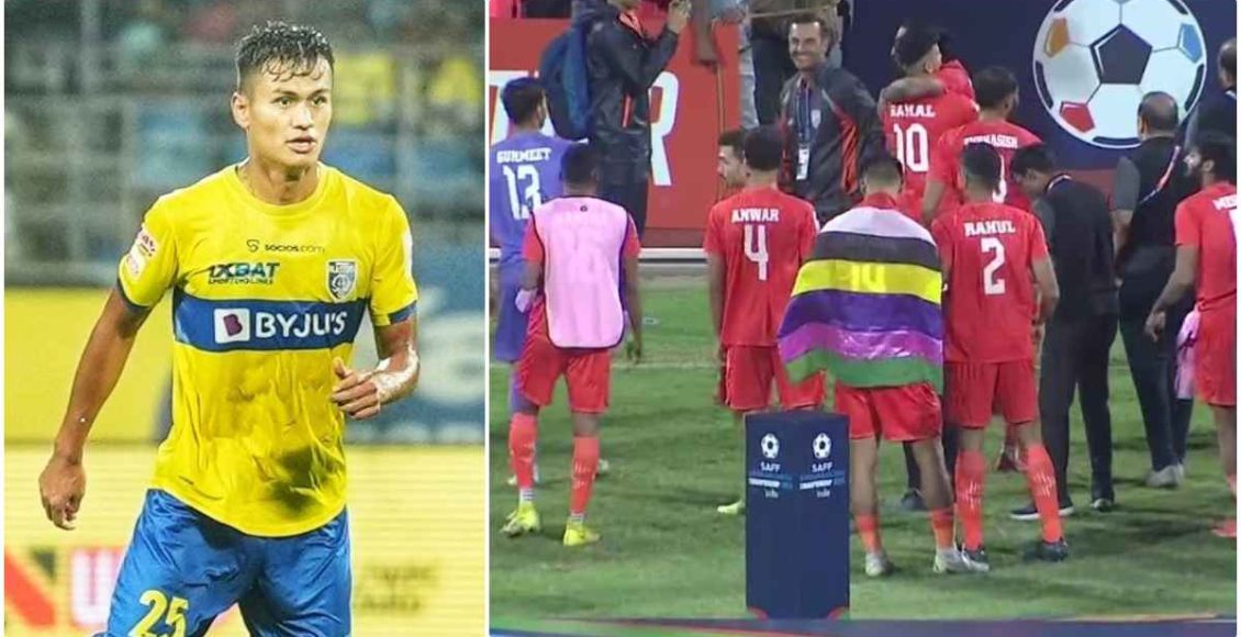മത്സരത്തിന് ശേഷം സോഷ്യൽ മീഡിയയിൽ ചർച്ചയായ ഒരു സംഭവം ഇന്ത്യൻ ടീമിലെ കേരള ബ്ലാസ്റ്റേഴ്സ് താരമായ ജീക്സൺ സിങ് പുതച്ചിരുന്ന പതാകയാണ്. സാധാരണ വിജയം ആഘോഷിക്കുമ്പോൾ ഇന്ത്യൻ പതാകയാണ് താരങ്ങൾ പുതക്കാറുള്ളതെങ്കിലും ബഹുവർണത്തിലുള്ള പതാകയാണ് ജീക്സന്റെ കയ്യിൽ ഉണ്ടായിരുന്നത്. അതിന്റെ കാരണം താരം തന്നെ പിന്നീട് വെളിപ്പെടുത്തുകയും ചെയ്തു.