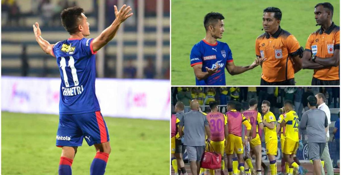 ഇന്ത്യൻ സൂപ്പർ ലീഗിൽ വലിയ വിവാദങ്ങൾ സൃഷ്ടിച്ചാണ് ബെംഗളൂരുവും കേരള ബ്ലാസ്റ്റേഴ്സ് എഫ്സിയും തമ്മിലുള്ള മത്സരം സമാപിച്ചത്. രണ്ടു ടീമുകളും നിശ്ചിത സമയത്ത് സമനിലയിൽ പിരിഞ്ഞ മത്സരത്തിൽ എക്സ്ട്രാ ടൈമിൽ സുനിൽ ഛേത്രി നേടിയ ഗോൾ അനുവദിച്ചതിൽ പ്രതിഷേധിച്ച് കേരള ബ്ലാസ്റ്റേഴ്സ് താരങ്ങൾ കളിക്കളം വിട്ടതോടെ മത്സരത്തിൽ ബെംഗളൂരു വിജയം നേടിയെന്ന് മാച്ച് കമ്മീഷണർ പ്രഖ്യാപനം നടത്തുകയായിരുന്നു.