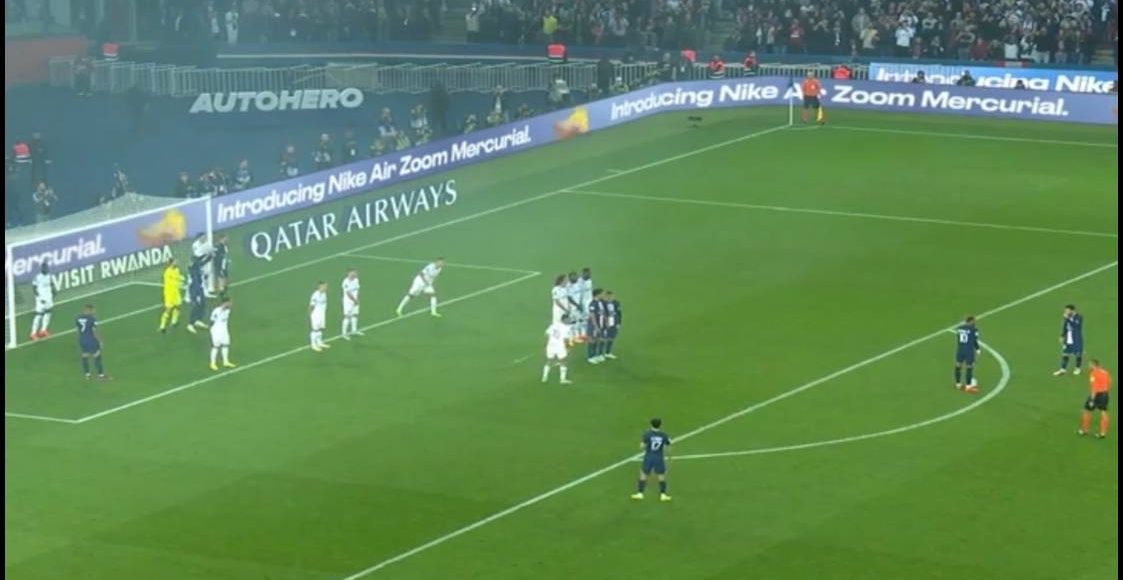 നെയ്‌മർ നേടിയ ഗോളിനോപ്പം ലയണൽ മെസിയുടെ ഫ്രീ കിക്കും മത്സരത്തിനു ശേഷം സാമൂഹ്യമാധ്യമങ്ങളിൽ ചർച്ചാവിഷയമാവുകയാണ്. മെസി സ്ഥിരമായി ഫ്രീ കിക്ക് ഗോളുകൾ നേടാറുണ്ടെങ്കിലും ഇത്തവണ ഗോൾ നേടാൻ താരത്തിന് കഴിഞ്ഞില്ല. ബോക്‌സിന് തൊട്ടു വെളിയിൽ നിന്നും താരമെടുത്ത കിക്ക് ബാറിലടിച്ച് നിലത്തു കുത്തി പുറത്തേക്ക് വരികയാണ് ചെയ്‌തത്‌. ഗോൾ നേടിയില്ലെങ്കിലും മെസിയുടെ ഫ്രീ കിക്ക് ചർച്ചയാകുന്നത് ഒരു കാര്യത്തിന്റെ പേരിലാണ്. താരത്തിന്റെ ഷോട്ട് തടുക്കാൻ ഏറ്റവും മികച്ച രീതിയിലുള്ള വാൾ ഒരുക്കി നിർത്തിയിട്ടും അതിനെ ഭേദിക്കാൻ ലയണൽ മെസിക്ക് കഴിഞ്ഞിരുന്നു.