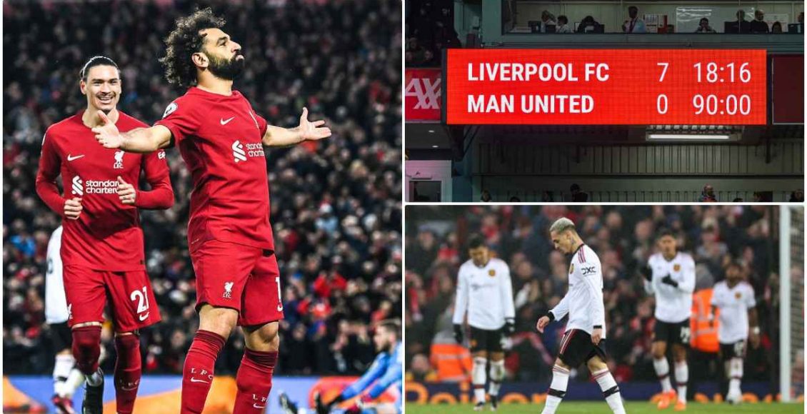 കറബാവോ കപ്പ് വിജയം നേടിയതിന്റെയും എറിക് ടെൻ ഹാഗിന് കീഴിൽ മാഞ്ചസ്റ്റർ യുണൈറ്റഡ് മികച്ച ഫോമിൽ കളിക്കുന്നതിന്റെയും സന്തോഷത്തിൽ മതിമറന്നു നടന്നിരുന്ന ആരാധകർക്ക് ഇനി താഴെയിറങ്ങാം. ഇംഗ്ലീഷ് പ്രീമിയർ ലീഗിൽ നടന്ന മത്സരത്തിൽ ലിവർപൂൾ മാഞ്ചസ്റ്റർ യുണൈറ്റഡിനെ അതിദയനീയമായ രീതിയിലാണ് തോൽപ്പിച്ചത്. ആൻഫീൽഡിൽ നടന്ന മത്സരത്തിൽ ചെകുത്താന്മാർ ഒന്നുമല്ലാതായി പോയപ്പോൾ എതിരില്ലാത്ത ഏഴു ഗോളുകളുടെ വിജയമാണ് ലിവർപൂൾ നേടിയത്.