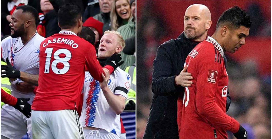മത്സരത്തിൽ ബ്രസീലിയൻ താരം ആന്റണിയെ ഒരു പാലസ് താരം വീഴ്ത്തിയതിനെ തുടർന്നുണ്ടായ പ്രശ്നങ്ങളാണ് കാസമേറോയുടെ ചുവപ്പുകാർഡിൽ അവസാനിച്ചത്. പ്രശ്നങ്ങൾക്കിടയിൽ പാലസ് മധ്യനിര താരമായ വില ഹ്യൂഗ്സിന്റെ കഴുത്തിൽ പിടിക്കുകയായിരുന്നു കസമീറോ. വീഡിയോ ദൃശ്യങ്ങൾ പരിശോധിച്ചതിനു ശേഷം റഫറി കസമീറോക്ക് നേരിട്ട് ചുവപ്പുകാർഡ് നൽകി. കരിയറിൽ ആദ്യമായാണ് ബ്രസീലിയൻ താരം നേരിട്ട്ചുവപ്പുകാർഡ് നേടുന്നത്.