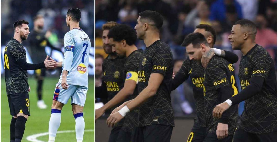 സൗദി അറേബ്യയിൽ പിഎസ്‌ജിയും റിയാദ് ബെസ്റ്റ് ഇലവനും തമ്മിൽ നടന്ന മത്സരത്തിൽ വിജയം നേടി പിഎസ്‌ജി. ഗോൾമഴ പെയ്‌ത മത്സരത്തിൽ നാലിനെതിരെ അഞ്ചു ഗോളുകൾക്കാണ് പിഎസ്‌ജി വിജയിച്ചത്. ലയണൽ മെസി, എംബാപ്പെ, റാമോസ്, മാർകിന്യോസ്, എകിറ്റിക്കെ തുടങ്ങിയ താരങ്ങൾ പിഎസ്‌ജിക്കായി ഗോൾ നേടിയപ്പോൾ സൗദിയിലെ ആദ്യ മത്സരത്തിൽ റൊണാൾഡോ രണ്ടു തവണ വലകുലുക്കി. സൂ ജാങ്, ടലിസ്‌ക എന്നിവരാണ് പിഎസ്‌ജിയുടെമറ്റു ഗോളുകൾ നേടിയത്.