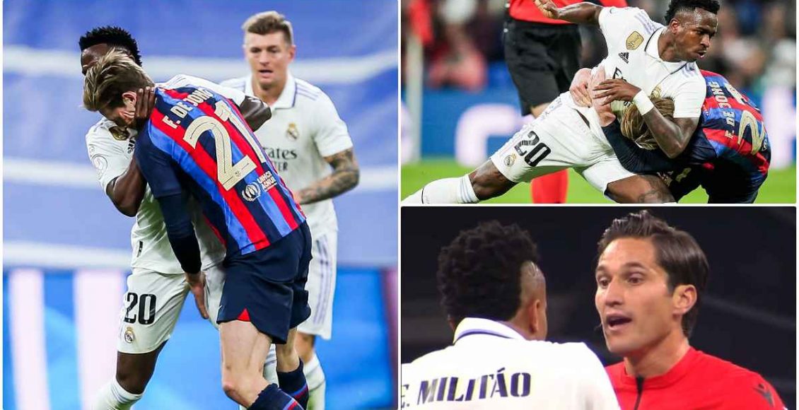 മത്സരത്തിൽ മികച്ച പ്രകടനം നടത്തിയ ഫ്രങ്കീ ഡി ജോംഗ് പന്തുമായി മുന്നേറുമ്പോൾ തടുക്കാൻ വിനീഷ്യസ് ശ്രമിച്ചെങ്കിലും അത് നടന്നില്ല. ഒടുവിൽ ബലാബലത്തിനിടെ റെസ്ലിങ് താരങ്ങൾ ചെയ്യുന്നതു പോലെ ഫ്രങ്കീയുടെ കഴുത്തിന് പിടിച്ച് വിനീഷ്യസ് നിലത്തിട്ടു. അതിനു മഞ്ഞക്കാർഡ് നൽകിയ റഫറിക്ക് നേരെയും വിനീഷ്യസ് ആക്രോശിച്ചിരുന്നു. എന്തുകൊണ്ടാണ് റഫറി ചുവപ്പുകാർഡ് നൽകാതിരുന്നതെന്ന ചോദ്യമാണ് ആരാധകർ മത്സരത്തിന് ശേഷം ഉയർത്തിയത്.